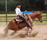 Chic N Chex ist eine sehr gut ausgebildete Stute mit vielen Turnererfolgen in der Reining,